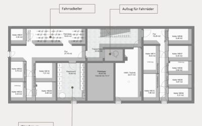 Ihr Fahrrad können Sie bequem mit dem Aufzug in das eigene, abschließbare Kellerabteil transportieren.